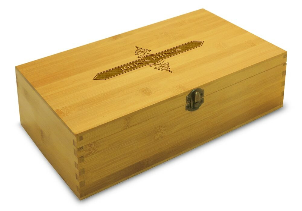 This box has a slide-out (not glued) removable 8-compartment divider, making it versatile box for storing gifts, keepsakes, tea bags or odds and ends! We engrave these boxes here Boise, Idaho, USA. The delightful honey color of Bamboo is produced entirely naturally, without the use of stain or paint.